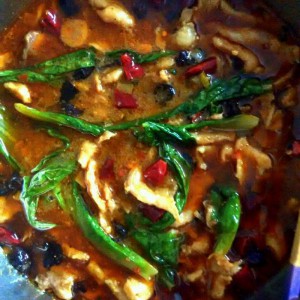 汤沸腾时,加入腌制好的鱼片,注意要边下边搅动,以免粘连。或者一片一片下。煮两三分钟即可。