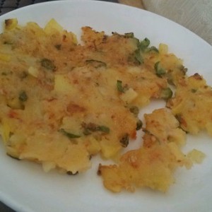 锅中加油等油热后转小火在煎饼。大概五分钟左右,翻面。就ok啦。