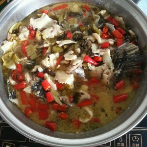 先将鱼头鱼尾鱼骨头煮一会。做汤。然后放进酸菜和鱼片。。。