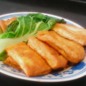 油煎嫩豆腐小白菜
