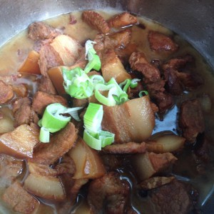 5翻炒到肉出油,味道色泽都很到位的时候,这时加入开水。水一定要没过肉最好。