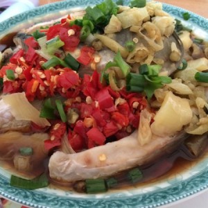 上锅蒸。这里用的是普通的锅蒸的。以前试过电饭煲蒸,但是鱼肉的口感不好。蒸大概20分钟。