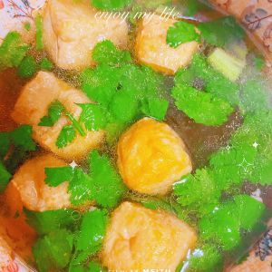 加入一碗开水,放入豆腐泡、盐、少许生抽、鸡精、胡椒粉、出锅前撒上自己喜欢的葱花或香菜即可~