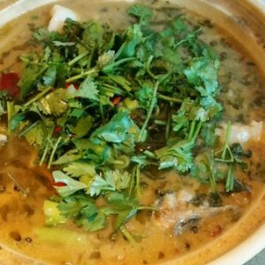 另起锅热油,油热后淋在上面刺啦啦的声音 酸菜鱼的香味扑鼻而来