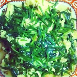 锅里倒油,放入韭菜,炒熟放入鸡蛋,轻轻一炒,便可出锅
