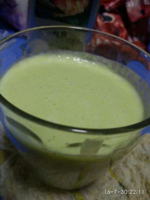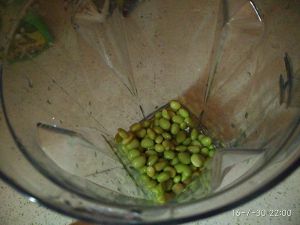 青豆放入磨研机中,加入小半杯温水,五分钟就可以