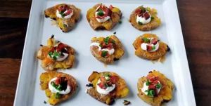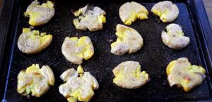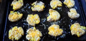 土豆出炉,每一个放上RICOS芝士酱,再放回烤箱烤2分钟。