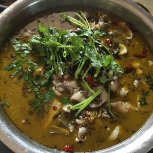 先炒鱼头鱼骨,然后放酸菜包,加热水,煮沸,然后把骨头和酸菜撩起来放盆里,等刚才的水沸,下鱼片,恍3分钟,不用等水沸,起锅,装盆,然后煎热油,淋酸菜鱼花椒上,最后放香菜。OK