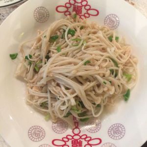 用一小锅把2-3匙油在炉上烧裂... 同时洗蒜苗切末撒在焯好的金针菇上,撒盐。油烧到几乎冒烟时泼到蒜苗上...吱吱啦啦厨房里弥漫着浓浓的香味, 拌匀, 就可以吃了! 咸香丝丝天然的醇甜!