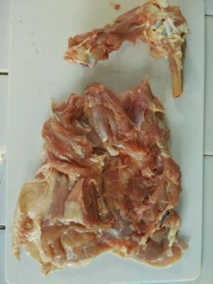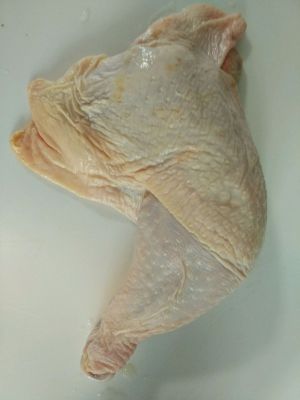 鸡腿剔骨,用刀在肉上划几刀,入味