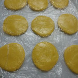 将保鲜袋带着饼一起折叠,本图是刚折了一下