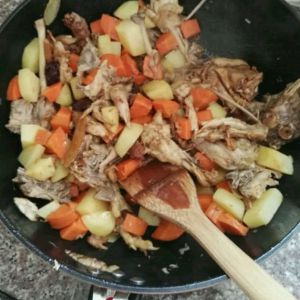 香料爆香,先放入鸡肉胡萝卜土豆