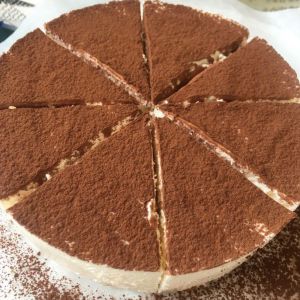 手指饼干放入模中,并刷上咖啡液,放在一边待用,这是用的七寸的模具