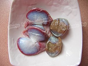 鲜鸭肫撕去鸭内金,用生粉、食盐、花生油搓洗干净,切大片;陈鸭肫洗净切片;瘦肉洗净切厚块;全部肉类一同放沸水中稍焯捞起。