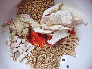 以上中药材洗净浸泡15分钟以上,蜜枣拍扁去核。