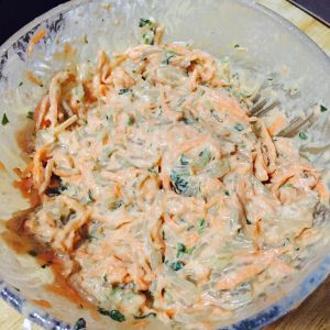 第四步。加入适量面粉。因为萝卜会吐水。在炸之前依情况而定再加适量面粉。