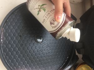 平底锅内到少许核桃油,因为是给宝宝吃我选择核桃油,大人吃也可以选黄油替代