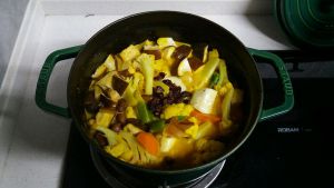 加入山药、芸豆、香菇、香茅、番茄酱、蔓越莓干(原本应该是放酸角的,可惜家里莫有)拌匀。