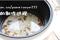 将糙米、糯米、葡萄干倒入电饭煲中,加入适量的水,一勺橄榄油。盖上盖子焖饭。等电饭煲跳闸之后不要急着打开盖子再多焖一会儿。