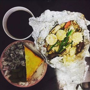 加入蔬菜后,用锡纸包住,蔬菜简单加入作料