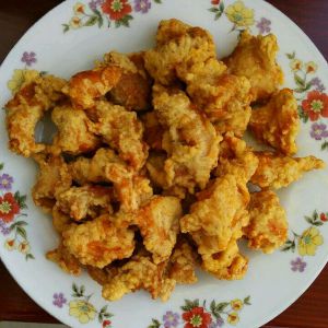 出锅后浇在炸好的肉段上,完成。我后来在调汁的时候把剩的蛋黄放里面了,看着不是很美观,为了色香味俱全,不要放蛋黄,哈哈。