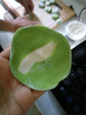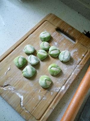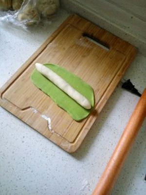 和一块白面、一块用菠菜汁和的绿面。