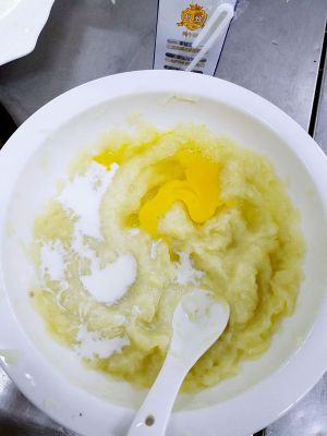 土豆切丝蒸15分钟应该是够够的了,用勺子慢慢碾碎,加盐味精少许,牛奶少许,一个鸡蛋,继续搅拌,继续碾碎