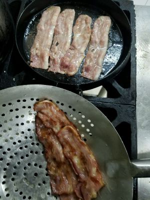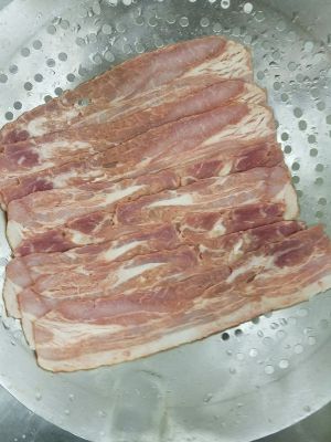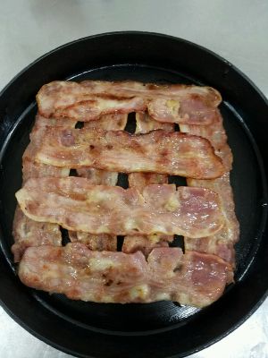 培根煎一下,为什么?怕烤的时候水分太多一会儿影响美观和口感