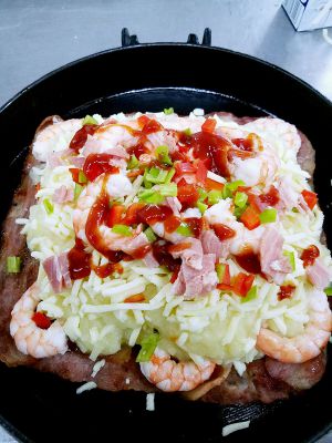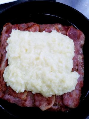 再来一层土豆泥,再来一层芝士碎,我反正铺了两层