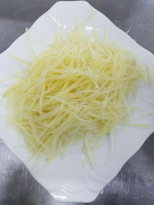 准备土豆(马铃薯),蒸熟蒸透,我切丝方便压成泥,熟的也快