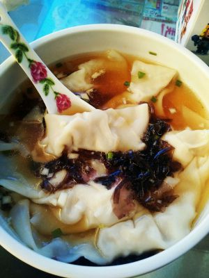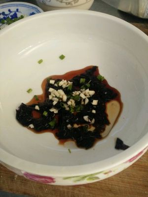煮的过程中准备汤料,放入洗净的紫菜(虾米),蒜和葱末,醋、生抽、香油~