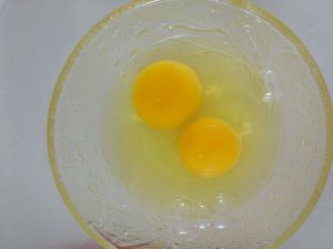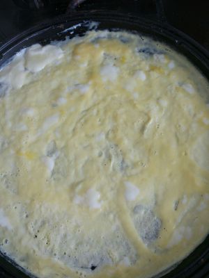 鸡蛋打散在电饼铛里摊成蛋饼。