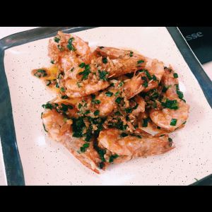 看到有点开始粘稠了,下刚才过油的虾翻炒,加一小半碗水,盖锅盖,等到汤汁开始粘稠了,撒葱花~关火,翻炒让余温把葱花变软~