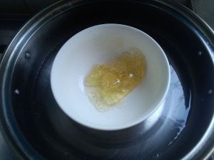 吉利丁片滤干水分,隔热水融化晾凉。