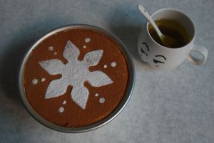 用筛网均匀筛上可可粉,也可再加糖粉装饰。美丽的提拉米苏就做好喽!
