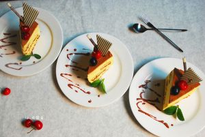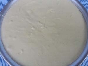 最上层是芝士糊,放入冰箱冷藏4—5小时凝固即可。取出脱模。(脱模时可用热毛巾捂一会儿或者用吹风机热风吹一圈,很轻松脱模了。