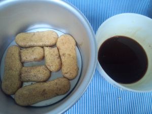 、手指饼干在咖啡酒里沾一下立刻取出,(用筷子很方便)。