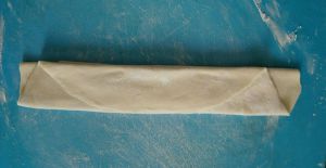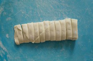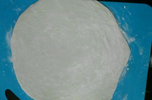 将面团移至面板上,洒上淀粉,擀成薄片,擀的过程时不时洒些淀粉,光滑不沾易擀。