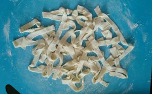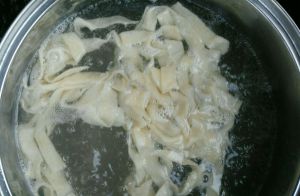 水烧开,下面,水滚一分钟即可,手擀面易熟。