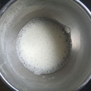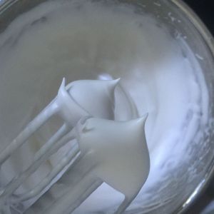 蛋白加入6滴柠檬汁,开始用中高速搅打蛋白。