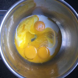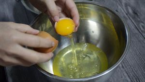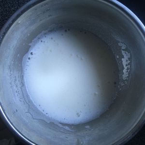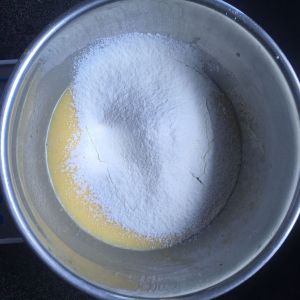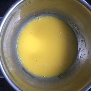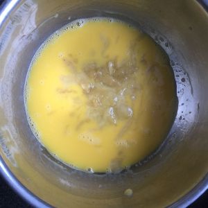 蛋黄加入牛奶、色拉油。