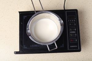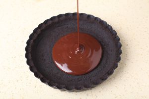 淡奶油倒入奶锅,煮至沸腾后离火。加入切碎的黑巧克力和黄油,静置5分钟。然后搅拌至巧克力和黄油都融化,成为光滑的甘纳许溶液