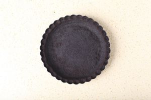 把饼干渣倒入模具底部铺匀,四周也要压平整,整形出塔皮的形状。连模具一起放入冰箱冷冻备用