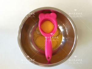 用分蛋器分出蛋黄,蛋白倒入无油无水的打蛋盆中