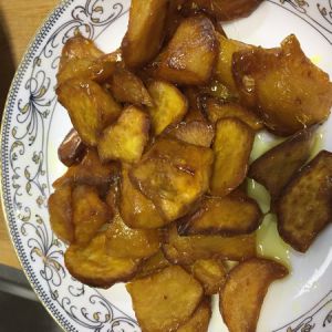 油8分热作用放入地瓜炸至金黄色捞出沥干