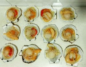 下火大火250°烤10到15分钟(时间根据扇贝大小定)。听到叮的一声就可以开动了