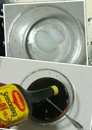 开始调汁,一勺糖,半勺盐,用二两水化开,加入一勺美极鲜,两勺东古一品鲜。