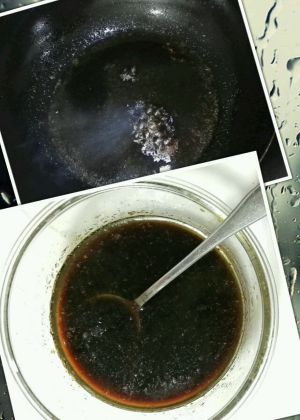 锅中倒少许油,稍温就将挑好的汁倒入,小火,不停的用铲子顺时针搅拌。煮至冒泡,马上关火倒出备用。(因料汁中有水,大火或时间久都会导致溅油)