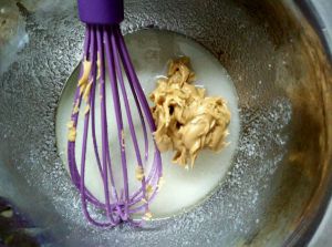 先将糖与油用蛋抽搅打均匀,直至颜色变浅