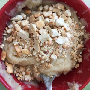 白芸豆沙里放入适量腰果碎,喜欢就多放,这就是自己做的好处,料足足滴